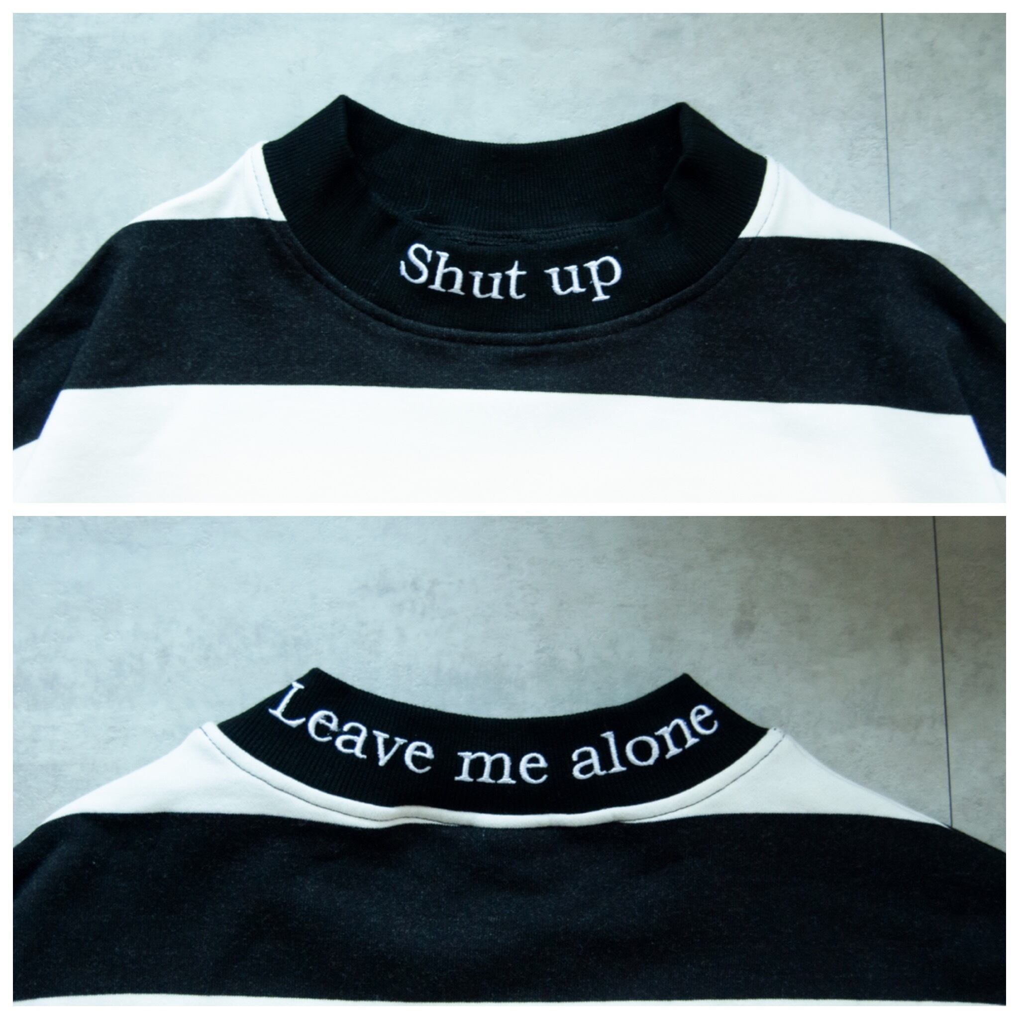 首元にはShut up / Leave me alone(うるさい/そっとしておいて)の刺繍入り◎